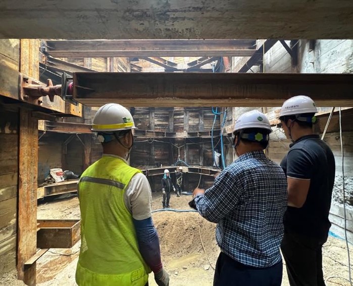 | ▲ 지하개발 현장 위험요소를 살피는 모습 |