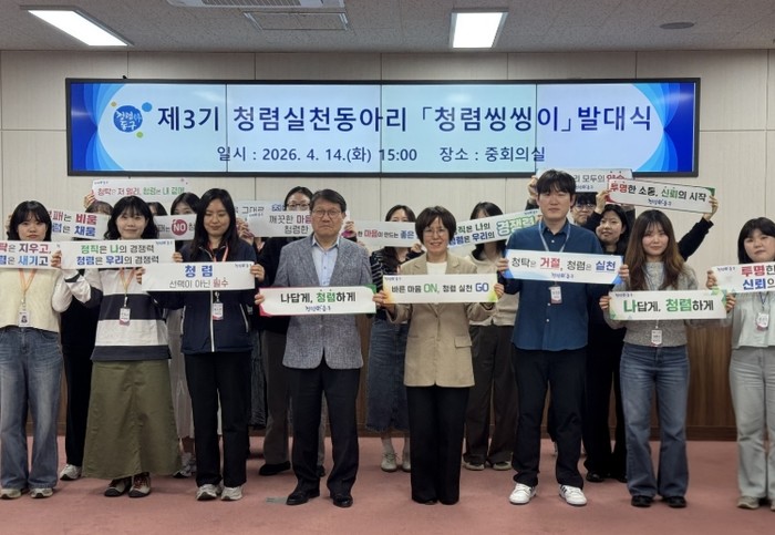 제3기 '청렴씽씽이'는 청렴 행정을 선도하기 위해 자발적으로 모인 MZ세대 직원 19명으로 구성됐으며, 앞으로 청렴 관련 아이디어 제안, 직원 의견 수렴, 참여형 청렴 프로그램 운영 등 다양한 활동을 통해 조직 내 청렴 실천 분위기 조성에 앞장설 계획이다.