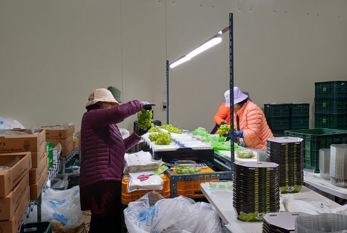 ▲ 영주 샤인머스켓, 호주 선적을 위해 상품을 다듬고 있다 |