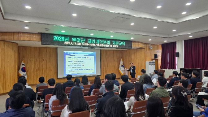 [파이낸셜경제=김영란 기자] 부여군이 회계 및 계약업무 담당 공무원들의 전문성을 강화하고 적극행정 문화를 조성하기 위해 ‘2026년 지방계약분야 기본교육’을 실시했다고 밝혔다.
