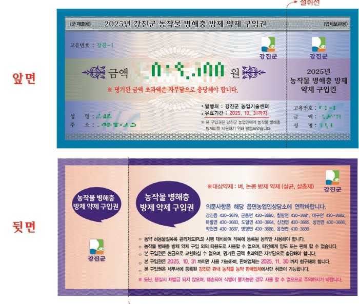 | ▲ 2025년도 강진군 병해충 방제 약제 구입권 시안 |