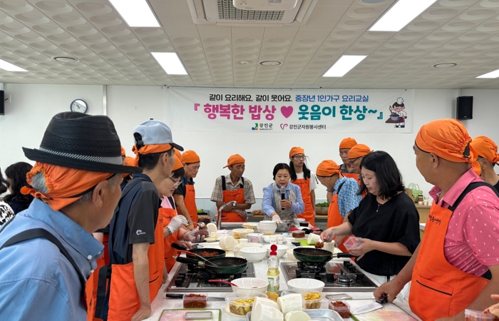 [파이낸셜경제=김예빈 기자] 강진군이 지난 14일 강진군청소년문화의집 2층 조리실에서 고독사 고위험가구(중장년 1인가구)를 위한 사회관계망 형성 지원사업으로 ‘행복한 밥상♥웃음이 한상’ 요리교실을 운영했다.