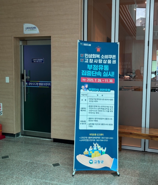 [파이낸셜경제=김예빈 기자] 고창군이 ‘민생회복 소비쿠폰’과 ‘고창사랑상품권’의 부정유통을 사전에 차단하기 위해 오는 11월30일까지 집중 단속을 실시한다.