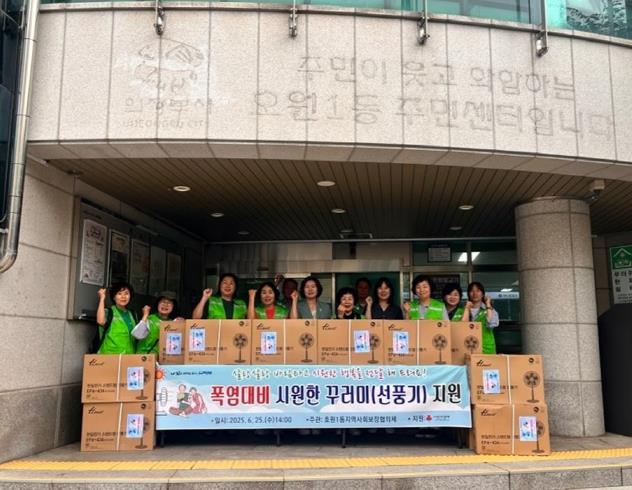 [파이낸셜경제=김기보 기자] 의정부시 호원1동주민센터는 6월 25일 호원1동 지역사회보장협의체와 함께 관내 취약계층 30가구에 ‘폭염대비 시원 꾸러미(선풍기)’를 전달하며 이웃사랑을 실천했다.