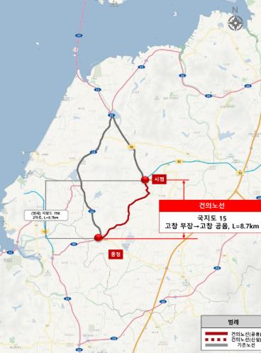 | ▲ 고창군 무장-공음간 지방도 796호선 국지도 승격..“차선확장 등에 국비지원” |