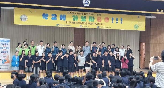 7월 15일 순천 세빛중학교를 시작으로 학교전담경찰관, 학생, 교사 등이 함께 참여해 학교폭력 등 청소년 범죄예방을 주제로 현장 중심 소통의 장과 다양한 참여형 체험 프로그램도 함께 운영될 예정이다.