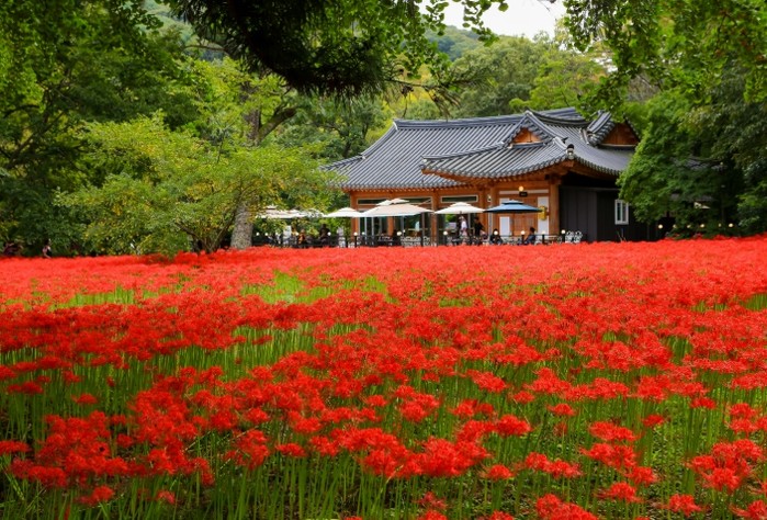 특히 꽃무릇은 꽃과 잎이 서로 다른 시기에 피는 독특한 식물로 “만날 수 있는 인연”을 상징한다. 붉게 물든 꽃밭 속을 거닐면 누구나 로맨틱한 분위기와 함께 가능만의 감성을 느낄 수 있다.