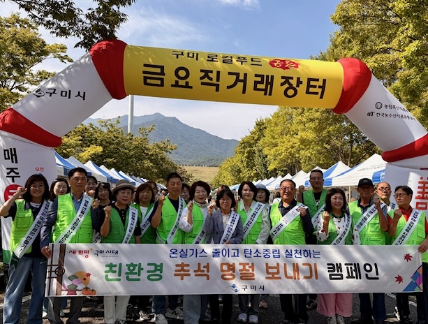 [파이낸셜경제=김지훈 기자] 구미시는 민족 최대 명절 추석을 맞아 지난 26일 금요직거래장터(금오산대주차장 제6주차장)에서 자연보호구미시협의회 회원 20여 명과 함께 ‘친환경 추석 명절 보내기 캠페인’을 전개했다.