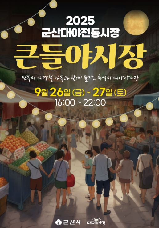 [파이낸셜경제=김예빈 기자] 군산시가 오는 26일부터 27일 이틀간 대야전통시장 주차장에서 ‘큰들야시장’을 개최한다.