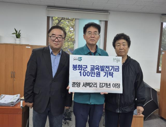 [파이낸셜경제=김지훈 기자] 춘양면 서벽2리 김기년 이장은 지역 인재 육성과 교육환경 개선을 위한 뜻을 모아 지난 13일 봉화군 교육발전기금으로 100만 원을 기탁했다.