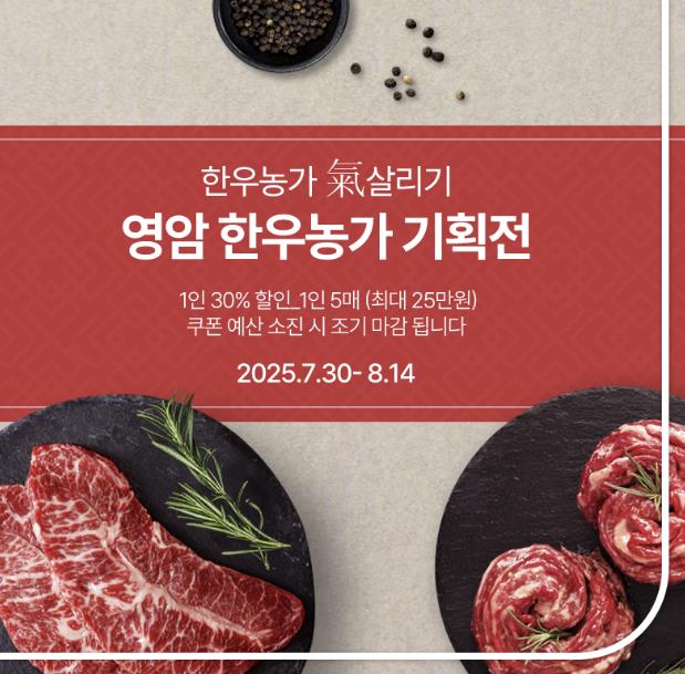 [파이낸셜경제=김예빈 기자] 영암군이 지역 한우 소비 촉진을 위해 ‘영암 한우농가 氣(기)살리기 기획전’을 8/14일까지 전라남도 공식 온라인 쇼핑몰 ‘남도장터’에서 개최한다.