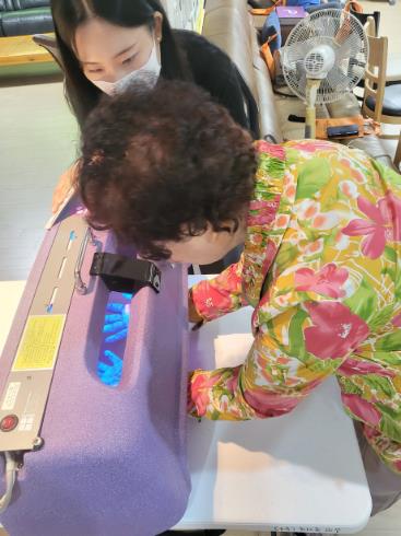 더불어 손에 남은 세균을 시각적으로 확인할 수 있는 ‘글리터버그(손오염도 측정기)’를 활용해 어르신들이 손 씻기의 중요성을 직접 체험하며 올바른 손 씻기 방법을 익힐 수 있도록 돕고 있다.