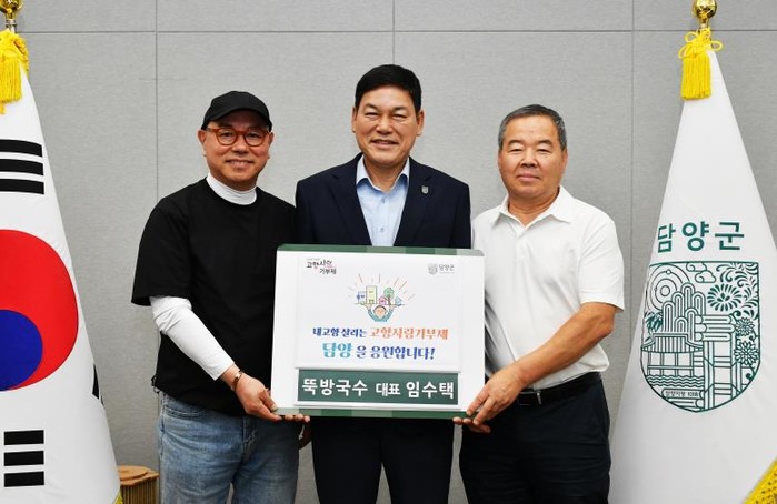 [파이낸셜경제=김예빈 기자] 담양군은 지난 16일 담양읍 소재 ㈜뚝방국수 가족이 고향사랑기부에 동참했다고 밝혔다.