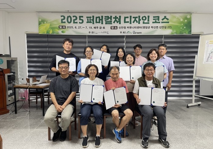 [파이낸셜경제=김예빈 기자] 영암군이 19일 유기농생태 신안정마을에서 농업기술센터에서 수료식을 마지막으로 4주간의 ‘2025년 퍼머컬처(permanent culture)학교 디자인 코스’를 성황리에 마쳤다.
