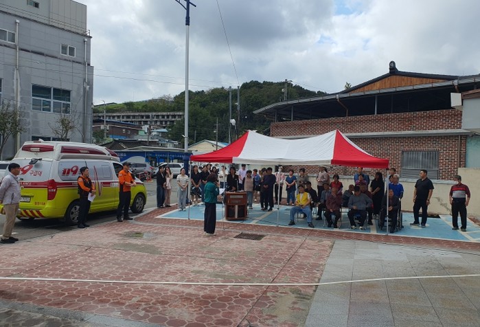 이번 훈련은 자위소방대원과 복지관 이용자 등 30여 명이 참여한 가운데, 화재 발생 상황을 가정하여 화재 신고, 대피 유도, 인명 구조, 초기 화재 진압 등 소방서 도착 전까지의 초기 대응체계를 중점적으로 훈련했다.
