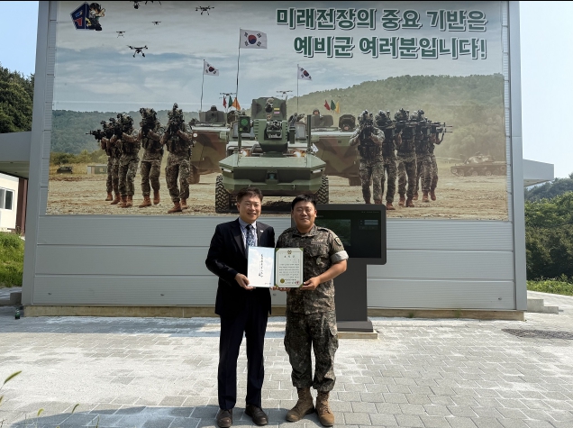 | ▲ 지난 7일 순천 과학화예비군훈련장에서 순천로컬푸드(주)가 로컬푸드육군표창장을 수상하고 있다 |