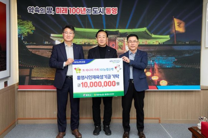 [파이낸셜경제=김예빈 기자] NH농협은행 통영시지부는 지난 25일 통영시(시장 천영기)에 인재육성기금 1,000만 원을 기탁했다.