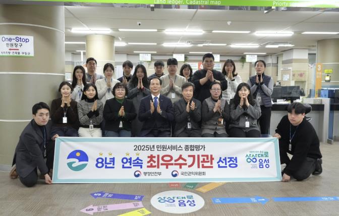 [파이낸셜경제=김기보 기자] 음성군이 행정안전부와 국민권익위원회가 공동 주관한 ‘2025년 민원서비스 종합평가’에서 최고 등급을 받아 8년 연속 최우수기관으로 선정되며, 탁월한 민원행정 역량을 다시 한 번 인정받았다.