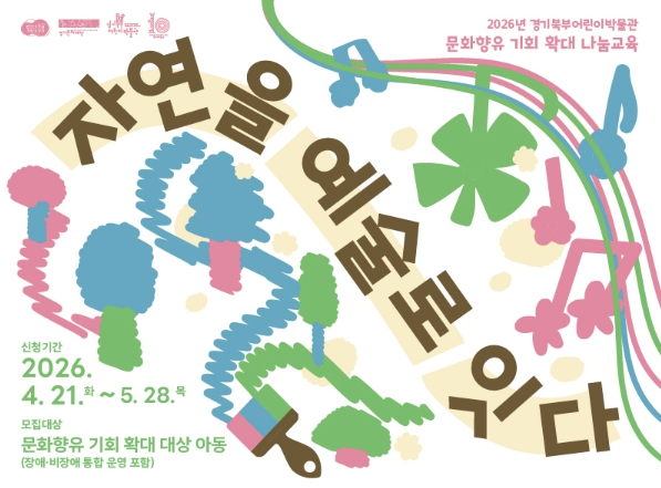 '자연을 예술로 잇다' 프로그램은 문화향유 기회 확대 대상 아동을 대상으로, 해당 아동단체들의 신청을 통해 6월까지 운영된다. 신청기간은 2026년 4월 21일부터 5월 28일까지이며, 장애아동뿐만 아니라 장애·비장애아동 통합신청도 가능하다.