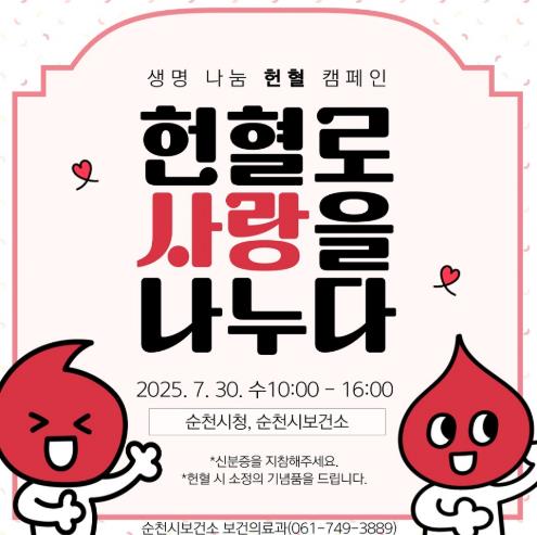 헌혈 관련 문의는 순천시 보건소 보건의료과로 하면 된다.
