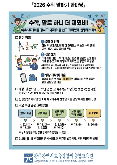 | ▲ [포스터] 광주창의융합교육원, ‘2026 수학 말하기 한마당’ 개최 |