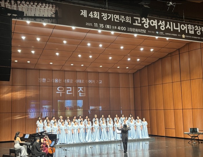 [파이낸셜경제=김예빈 기자] 고창여성시니어합창단(단장 홍병숙)이 고창문화의전당에서 정기연주회를 열어 군민들의 마음을 낭만의 선율로 물들였다.