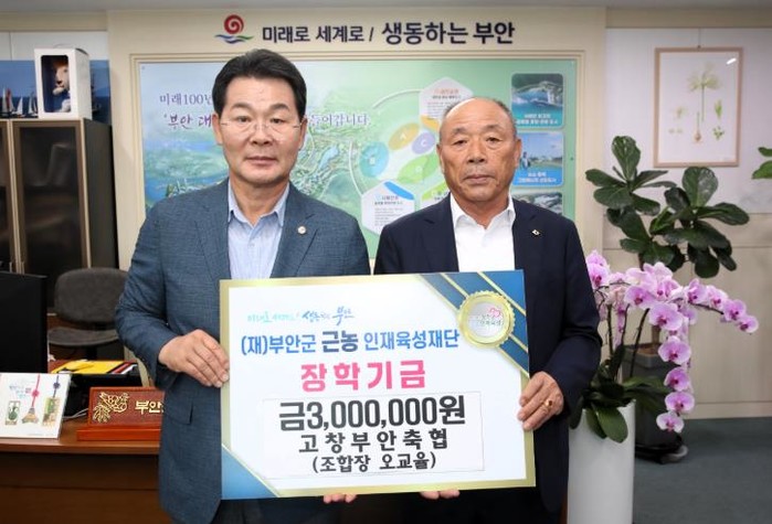 [파이낸셜경제=김예빈 기자] 고창부안축협은 지난 22일 부안군 근농인재육성재단을 방문하여 장학금 300만원을 기탁했다.