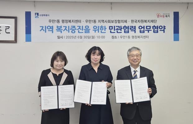 협약식은 이날 오전 우만1동 행정복지센터에서 열렸으며, 세 기관은 지역 맞춤형 복지서비스 개발과 복지사각지대 발굴, 민간 자원 연계 등 공동 복지사업을 추진하기로 합의했다.