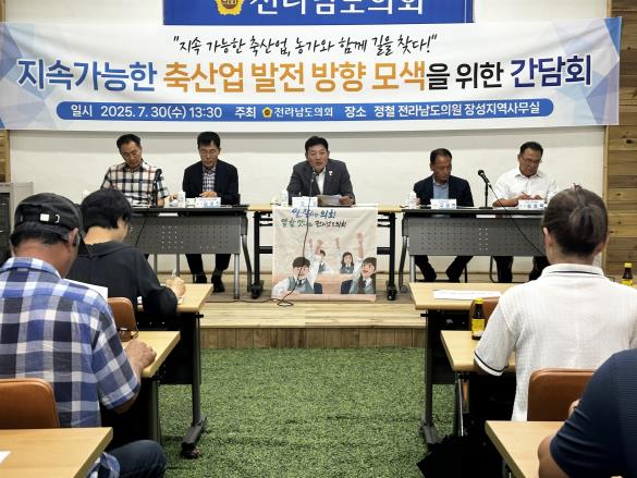 [파이낸셜경제=김예빈 기자] 전라남도의회 정철 의원(더불어민주당·장성1)이 지난 7월 30일 장성군에서 축산업 관계자들과 함께 ‘지속가능한 축산업 발전 방향 모색을 위한 간담회’를 열고 현장의 목소리를 듣는 시간을 가졌다.