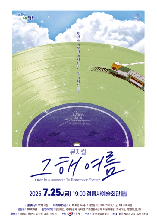 [파이낸셜경제=김예빈 기자] 정읍시가 무더위 속 시민들에게 예술적 감동을 선사하기 위해 감성 뮤지컬 ‘그해 여름’을 정읍사예술회관 무대에 올린다.