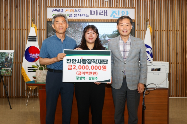 [파이낸셜경제=김예빈 기자] 진안사랑장학재단(이사장 전춘성)은 23일 강성백·강희주 씨 부녀가 장학금 200만원을 기탁했다고 밝혔다.