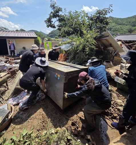 지난 22일에는 직원 20여 명이 투입돼 산청군 생비량면 일원의 침수 주택에서 냉장고, 가재도구 등을 꺼내고, 토사를 제거하고 쓰레기를 치우는 등 복구 활동에 전력을 다했다.