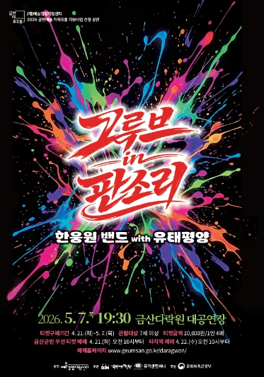 금산다락원 관계자는 “전통과 현대가 경계 없이 어우러지는 이번 공연을 통해 군민들께 수준 높은 문화 향유 기회를 제공하고자 한다”며 “가정의 달 5월을 맞아 온 가족이 함께 우리 소리의 새로운 매력을 만끽하는 시간이 되길 바란다”고 전했다.