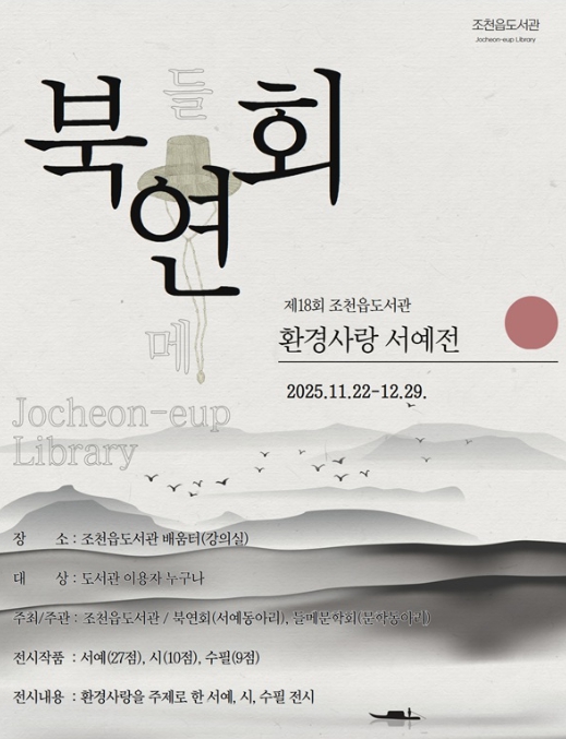 이번 전시회는 조천읍도서관이 주최하고 서예동아리 ‘북연회’와 문학동아리 ‘들메문학회’가 주관하며, ‘탄소중립 도시 실현을 기원하는 환경사랑’을 주제로 한 서예, 시, 수필 등 총 46점의 작품이 전시된다.