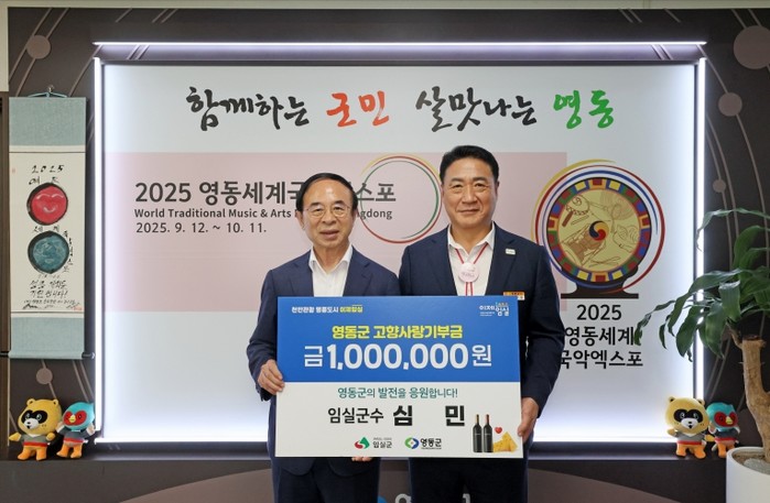 [파이낸셜경제=김예빈 기자] 임실군 심 민 군수가 충북 영동군에 고향사랑기부금 100만원을 기탁하며 자매결연 도시 간의 우정을 다시 한번 확인했다.