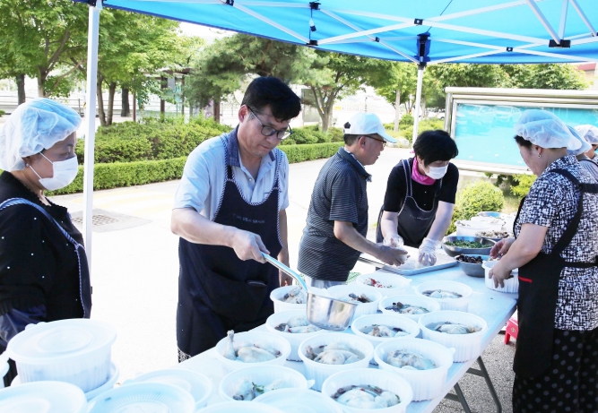 이날 삼계탕은 홀몸 어르신, 장애인 가구 등 130가구에 직접 전달됐고, 여름꾸러미 110박스도 손수 배달됐다.