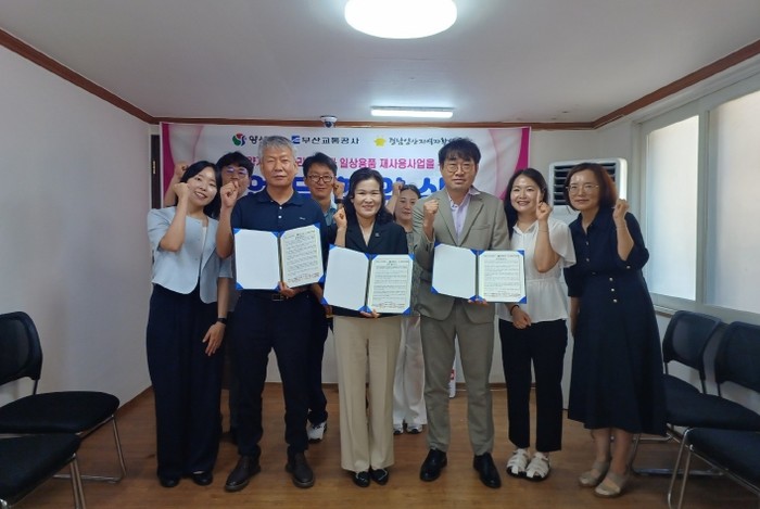 [파이낸셜경제=김예빈 기자] 양산시는 취약계층 자립을 위한 자활사업 추진 및 자원재활용을 위해 양산시, 부산교통공사 제2운영사업소, 경남양산지역자활센터가 7월 24일 3자 업무협약(MOU)을 체결했다고 밝혔다.