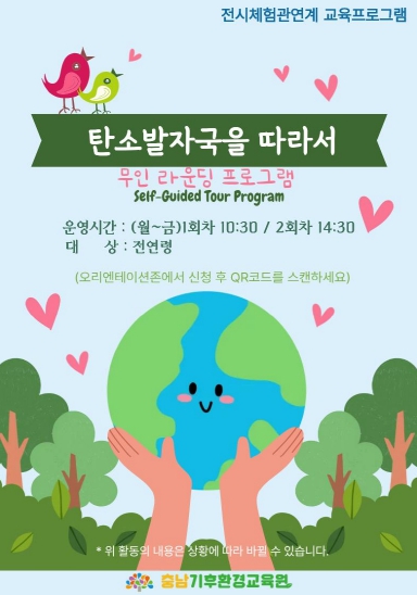충남기후환경교육원은 체험관 시설을 활용한 ‘참여형 체험 기반 상시 환경교육 프로그램’을 오는 4월 13일부터 10월 31일까지 운영한다고 밝혔다.