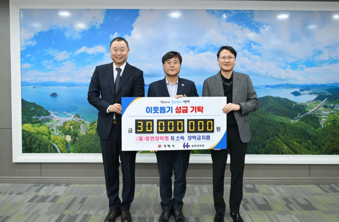| ▲ (재)동헌장학회, 거제시 저소득 가정에 장학금 3,000만 원 전달 |
