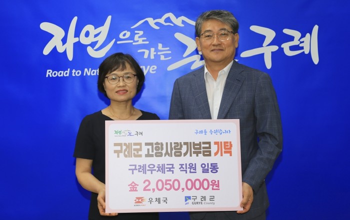 구례우체국은 지난해에 이어 올해에도 직원들이 모금한 205만 원의 고향사랑기부금을 구례군에 전달하며, 지역과의 협력 증진과 상생발전에 힘을 보탰다.