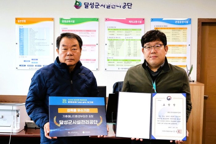 [파이낸셜경제=김지훈 기자] 달성군시설관리공단은 기후에너지환경부가 주최하고 한국환경공단이 주관하는 ‘2025년 공공부문 온실가스 목표관리제’ 우수기관에 선정됐다고 28일 밝혔다.