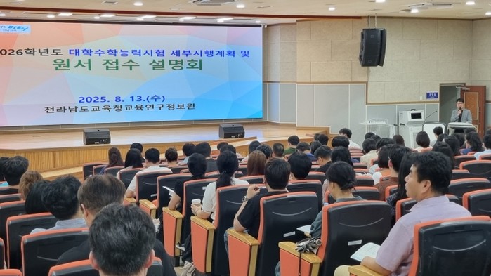 이와 관련, 전남교육청은 학교현장의 혼선을 최소화하기 위해 지난 13일 전라남도교육청교육연구정보원에서 ‘2026학년도 대학수학능력시험 세부시행계획 및 원서접수 설명회’를 개최했다.