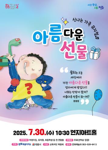 [파이낸셜경제=김예빈 기자] 정읍시가 문화가 있는 날을 맞아 오는 30일 오전 10시 30분, 연지아트홀에서 가족뮤지컬 ‘아름다운 선물’을 무료로 선보인다.