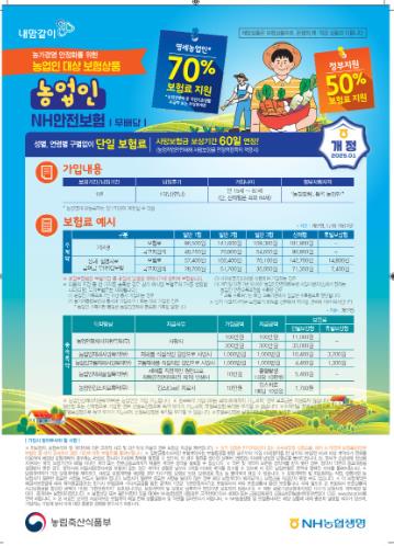 특히 농업경영체에 등록된 가족과 동시 가입하거나, 농작업 재해예방 교육 등을 수료하면 주계약 보험료의 5%를 추가로 할인받을 수 있다.