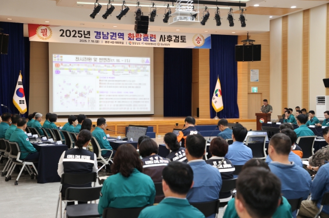 [파이낸셜경제=김예빈 기자] 경상남도는 18일 오전, 도청 대회의실에서 ‘2025년 경남권역 화랑훈련 사후검토회의’를 개최하고, 14일부터 17일까지 실시된 화랑훈련의 성과와 과제를 점검했다.