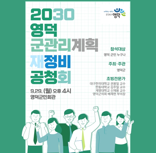 [파이낸셜경제=김지훈 기자] 영덕군은 도시의 지속 가능한 발전과 합리적인 토지이용을 위해 ‘2030 영덕 군관리계획 재정비(안)’ 공청회를 오는 29일 오후 4시 영덕군민회관에서 진행한다.
