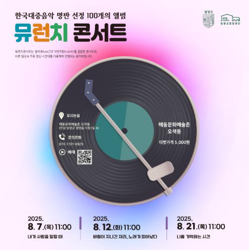 재단 관계자는 “뮤런치 콘서트를 통해 담양의 낮 시간이 음악으로 더욱 풍요로워지고, 바쁜 일상 속 잠시나마 여유와 감동을 느낄 수 있길 바란다”며 “앞으로도 다양한 문화 프로그램을 지속적으로 기획해 문화예술도시 담양을 만들어가겠다”고 말했다.