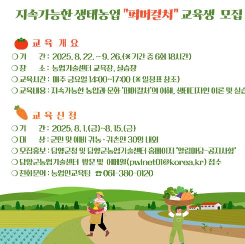 | ▲ 담양군, 지속가능한 생태농업 위한 ‘퍼머컬처 교육’ 참가자 모집 |