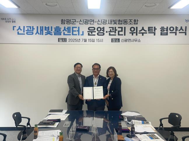 함평군은 17일 “신광면 새빛행복홈센터 운영·관리 위수탁 협약식이 지난 15일 신광면사무소 회의실에서 성공적으로 마무리됐다”고 밝혔다.