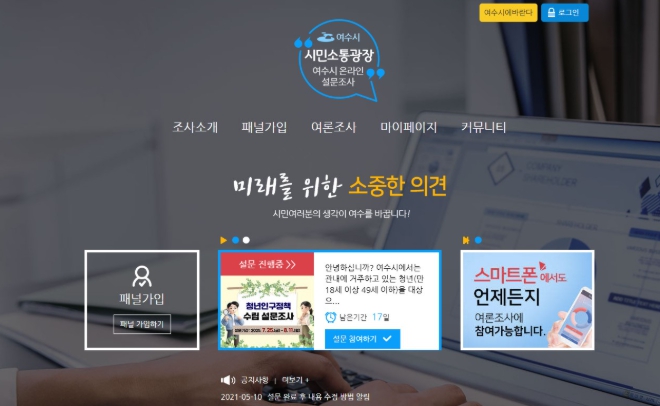 | ▲ 시민소통광장(여수시 온라인 설문조사) 누리집 화면 |